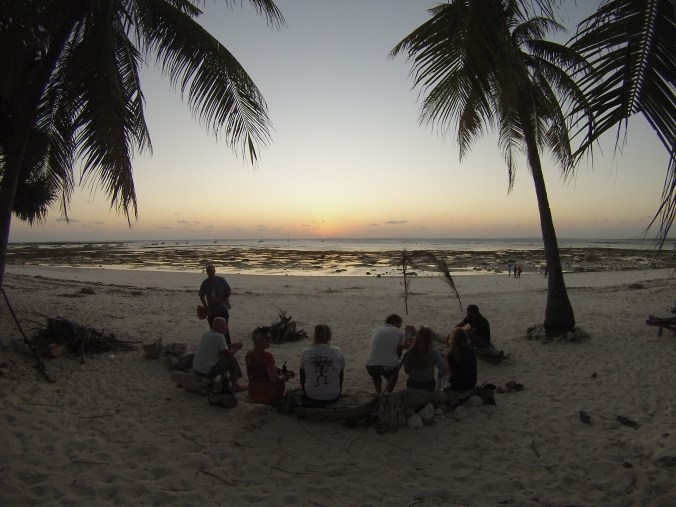 A las 6.30 pm se vuelve a escuchar el grito «¡makan!» y todos, sin importar lo colorido del atardecer o lo agradable que esté la fogata, nos volvemos a juntar en la mesa principal del Tirosa para la última comida del día. Las cenas son igual de buenas que las comidas y siempre les sigue un rato de sobre mesa y uno que otro café, tras lo cual regresamos a la fogata; los aussies con sus Bintang besar (chelotas de marca Bintang) y nosotros simplemente a jugar con el fuego y platicar. La mayoría de los huéspedes se duerme entre las 8 y las 9pm pero nosotros, con alguno que otro que no sea surfista intenso, aguantamos hasta las 11pm, hora en la que nos metemos a dormir, protegidos de los bichos de la noche, dengue y malaria por unas redes que engloban las camas en nuestro cuarto.