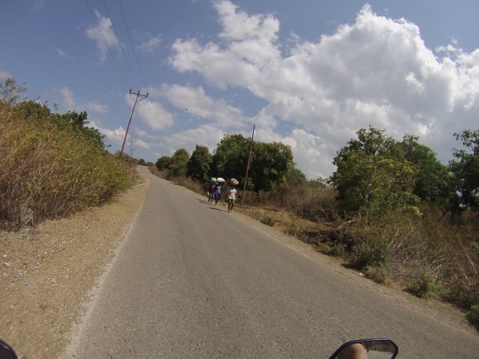 Nos estamos quedando en el Tirosa, un humilde hostal compuesto de una casa principal que otrora hubiera podido albergar la administración y cafetería de una típica escuela indonesia; un conjunto de pequeños edificios y cabañas de colores pastel, amarillo o verde, que hubieran podido ser los salones y un patio central para jugar fútbol o cotorrear a gusto, si no fuera por el riesgo de morir descalabrado por los cocos que caen constantemente. Las construcciones recuerdan aquellas de la costa norte de Yucatán, abandonadas al mar y salitre o destruidas por pasados huracanes. Nuestro cuarto se eleva un metro sobre el suelo y cuenta con una terraza lo suficientemente amplia para que quepa una mesita, un par de sillas y nos invite a pasar la mayor parte del día aquí, disfrutándolo. La habitación se mantiene siempre fresca, con ventanas sin vidrio ni mosquetero, invitando, a pesar de los colchones de espuma y almohadas robadas de algún antiguo sofá, los sueños más profundos y, de vez en vez, psicodélicos. Tenemos la suerte, a diferencia de nuestros vecinos, de contar con un escusado «occidental»; los baños son a jicarazos, y la electricidad sólo fluye de noche. El viento sopla constante todo el día, apaciguando los treinta y tantos grados habituales y manteniendo alejados a los moscos y moscas. A unos cincuenta metros de nuestra mesita el mar, de colores azul, verde y turquesa comparte el horizonte con una playa de harina blanca y lo único que se escucha es el baile de las palmeras, el cacareo de los gallos y alguna discusión entre las cabras que pasean libremente en busca de algún antojito.