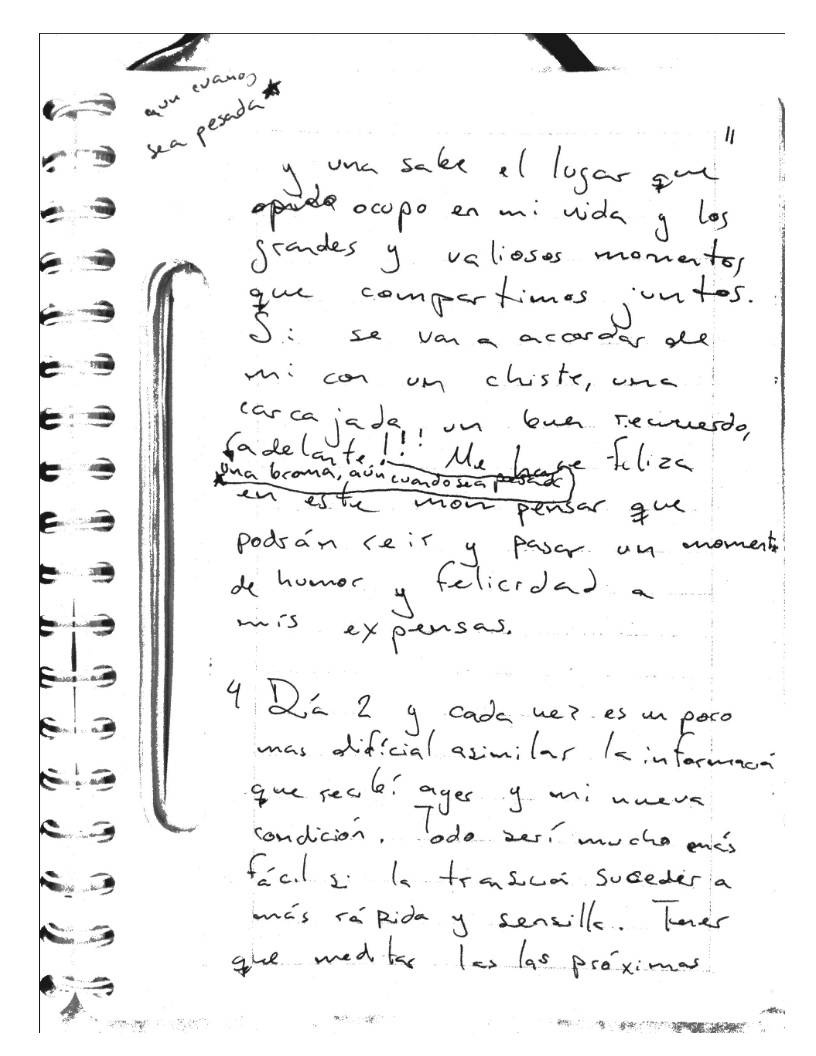 Estoy sorprendida, gracias por compartir lo último que escribio Alex, es una lección de vida y del bien morir….que bien poder estar lucido y despedirse antes de emprender otro camino…