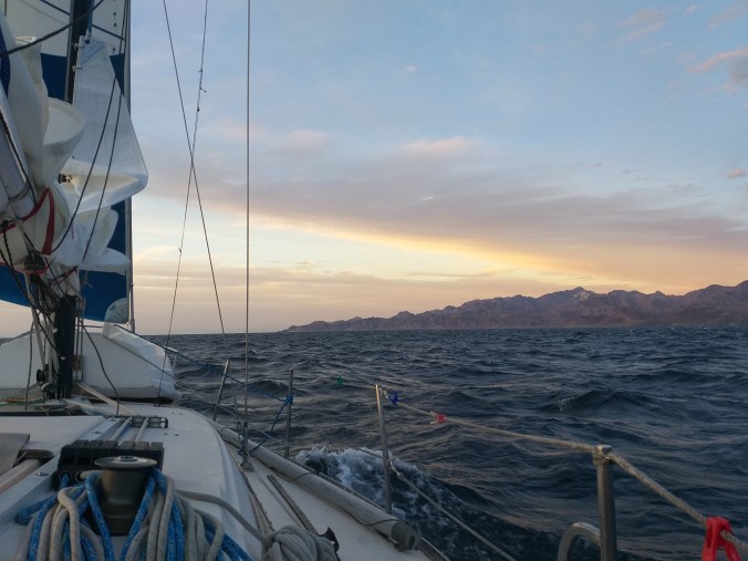 Luego de una breve escala en isla Mitlán comenzaron su ascenso por el Canal de Ballenas. Según la información anotada en la bitácora, las condiciones parecían incluso idóneas para izar la spinnaker. Todo cambió bastante rápido. A las 1600 bajaron la vela mayor, sin perder velocidad alguna. Iban a unos 6 nudos. A las 1700 redujeron el tamaño de la genovesa en un 50%. Tampoco afecto la velocidad. A las 1930, con 20% de la genovesa, lo que llamó «un pañuelo de vela», iban a 9 nudos, que, agregó «es la velocidad a la que el Delorian hubiera viajado al futuro de haber sido un velero monocasco de 33 pies».