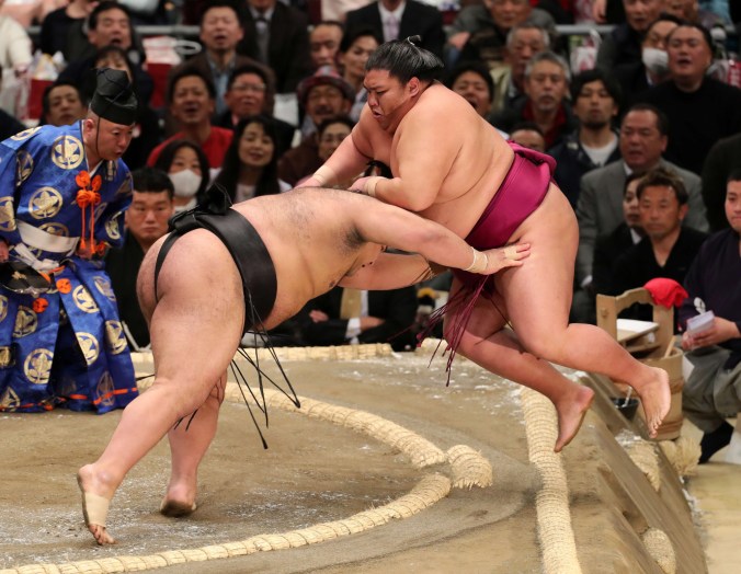 Sus brazos patinaban en sudor y al chocar, tsunamis recorrían sus cuerpos y gritos que conmovían hasta las filas más alejadas de las gradas hacían erupción. Atraído por la fuerza de gravedad, Farallón se fue hundiendo en las lonjas resbalosas de su oponente. En un último esfuerzo por sacar a Norita, se inclinó tanto que su chongmage pasó por entre los muslos de aquel y, al no encontrar la fuerza contraria acostumbrada, se fue de cara hacia el piso a tal velocidad que no sólo salió del dohyo, sino que cayó de la plataforma y desapareció entre los espectadores. Al mismo tiempo, Norita, quién no había cedido ni un paso ni menguado la fuerza ejercida sobre el cuerpo de su rival, se vio volar por encima de este, cayendo sobre el shikiri-sen, lejos del borde al que sus pies tanto se habían aferrado. Fue una lucha de titanes a quienes la Tercera Ley de Newton dio una lección inolvidable, y que, volviendo al mundo geológico, produjo la falla de San Andrés y el propio Mar de Cortés.